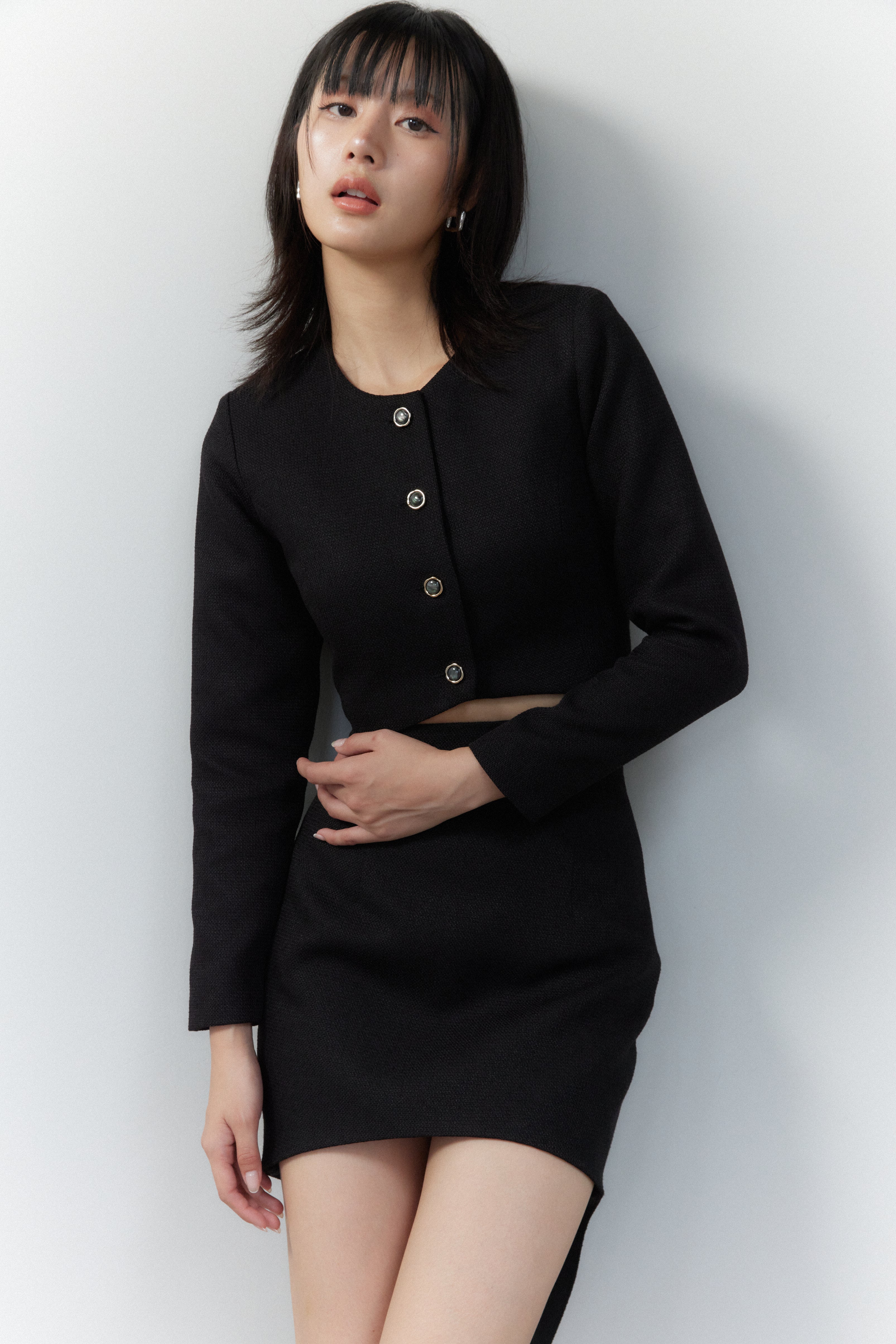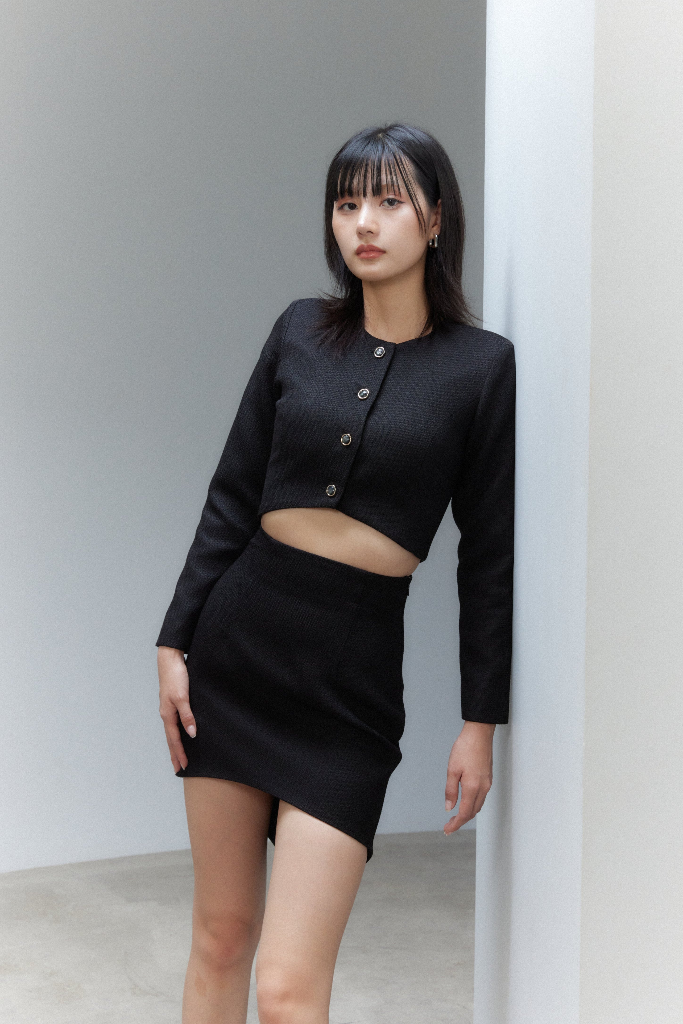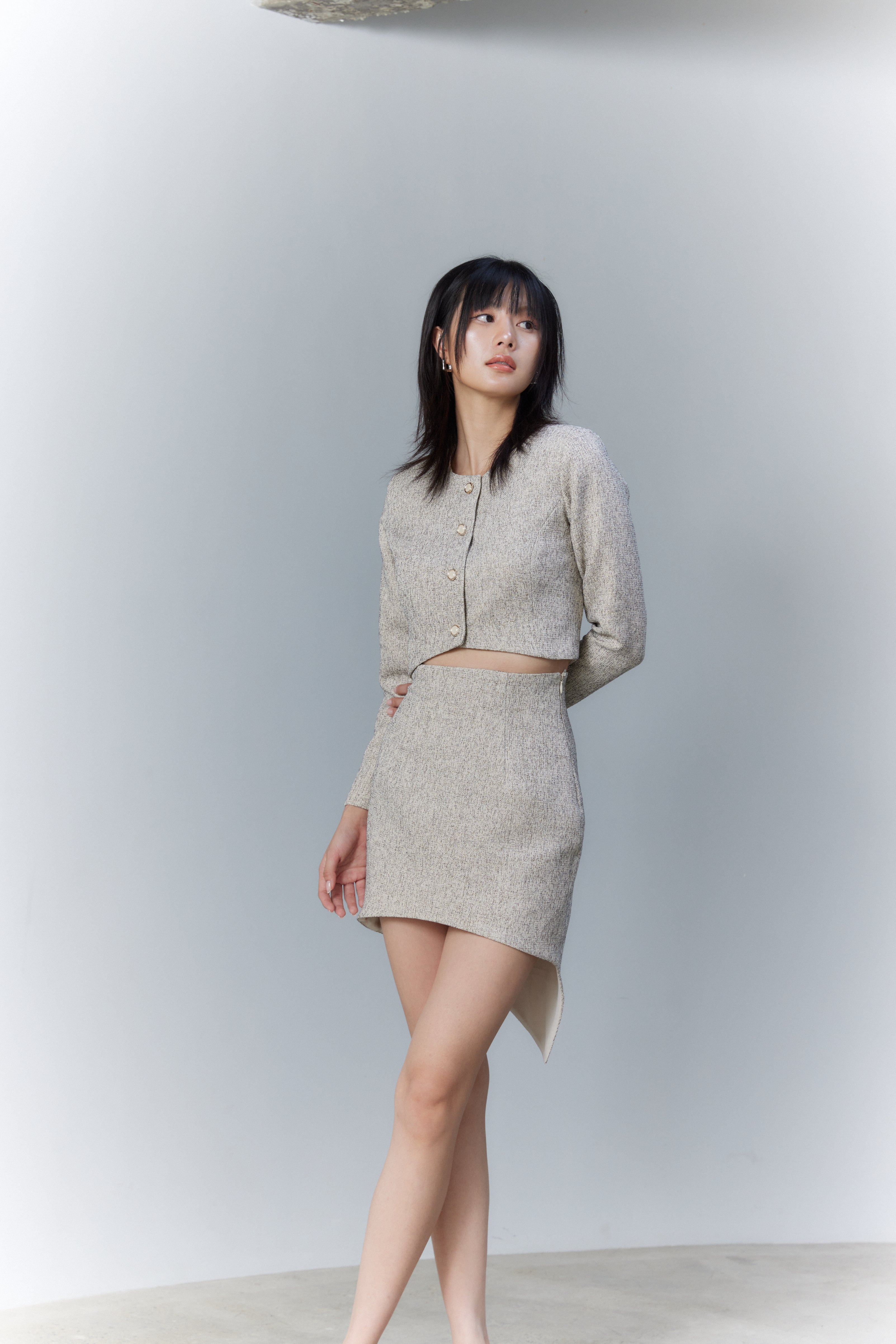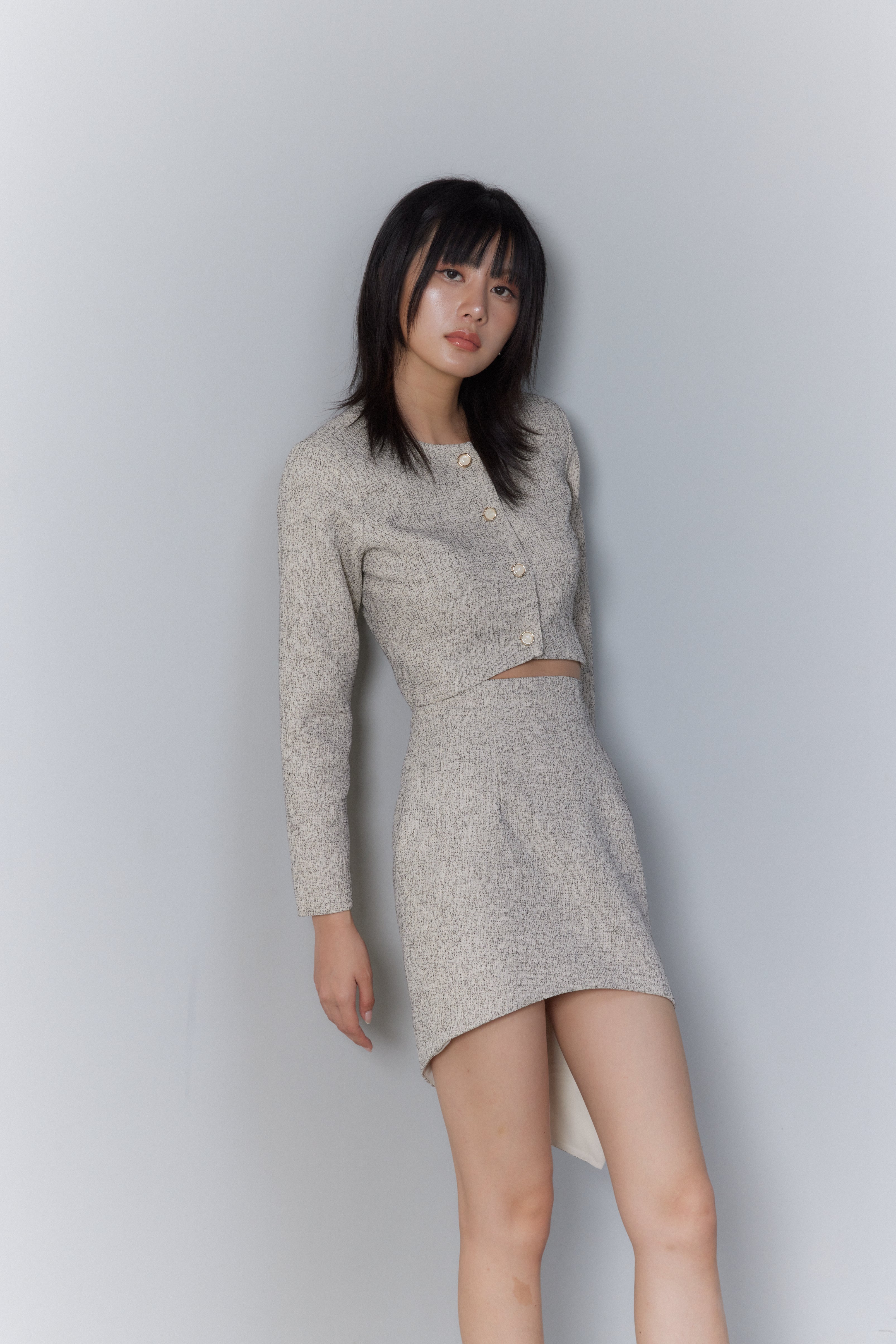 The Claire Tweed Mini Skirt is the epitome of understated elegance. Designed with a tailored fit and an asymmetric hemline, this piece adds a modern twist to classic tweed. The high quality tweed fabric enhances your shape while maintaining a refined silhouette. Whether styled with our matching Claire Tweed Crop Jacket or worn separately, this skirt is a must-have for every fashion-forward wardrobe.