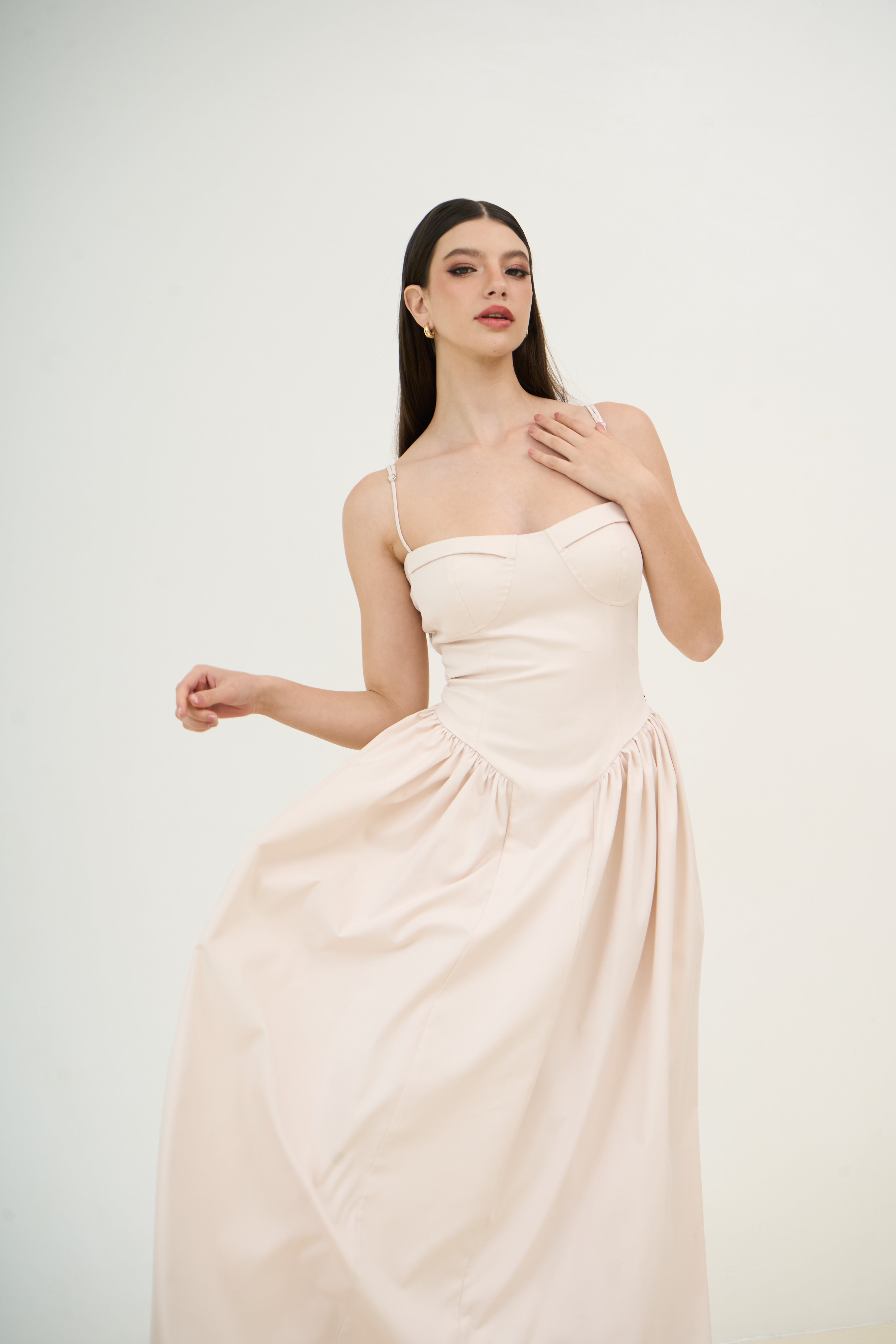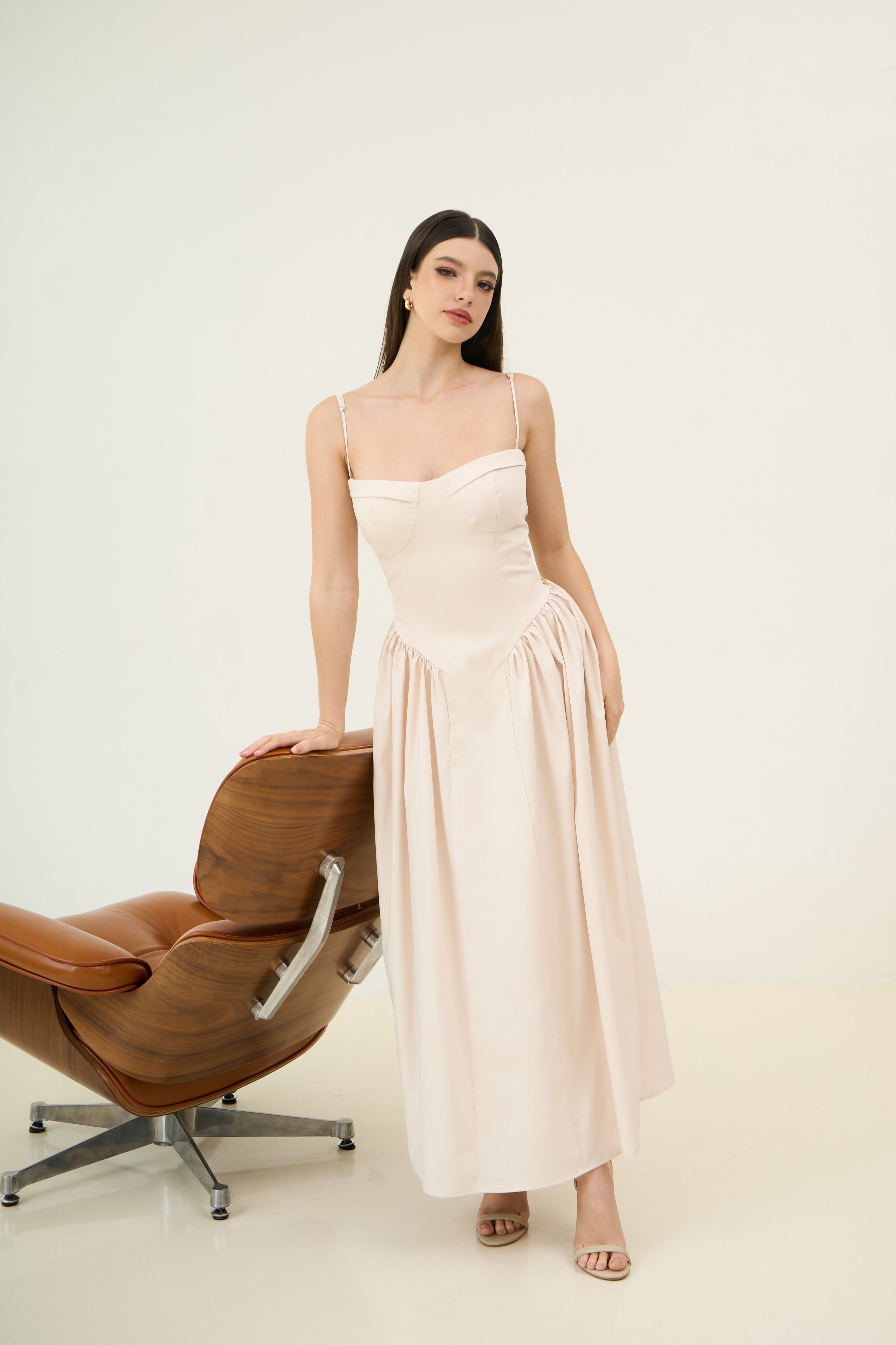 Elegant, structured, and timeless — the ELLE Maxi Dress is a modern take on classic femininity. Featuring a corset-style bodice with built-in padded cups, this dress offers flattering shape and support without the need for a bra. Adjustable straps ensure a tailored fit, while the softly gathered skirt adds movement and charm. Perfect for evening events, formal occasions, or when you simply want to feel like your most confident self.