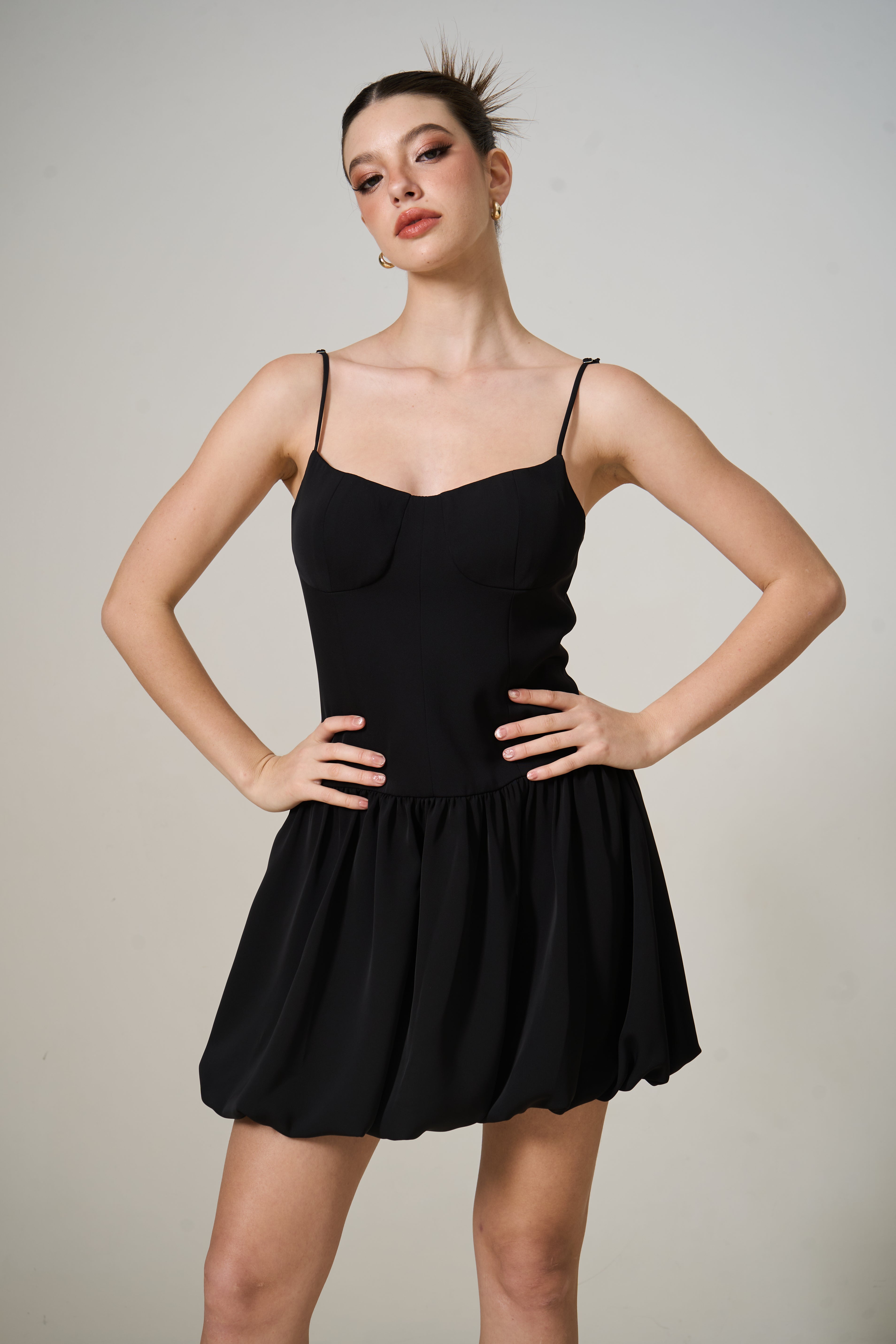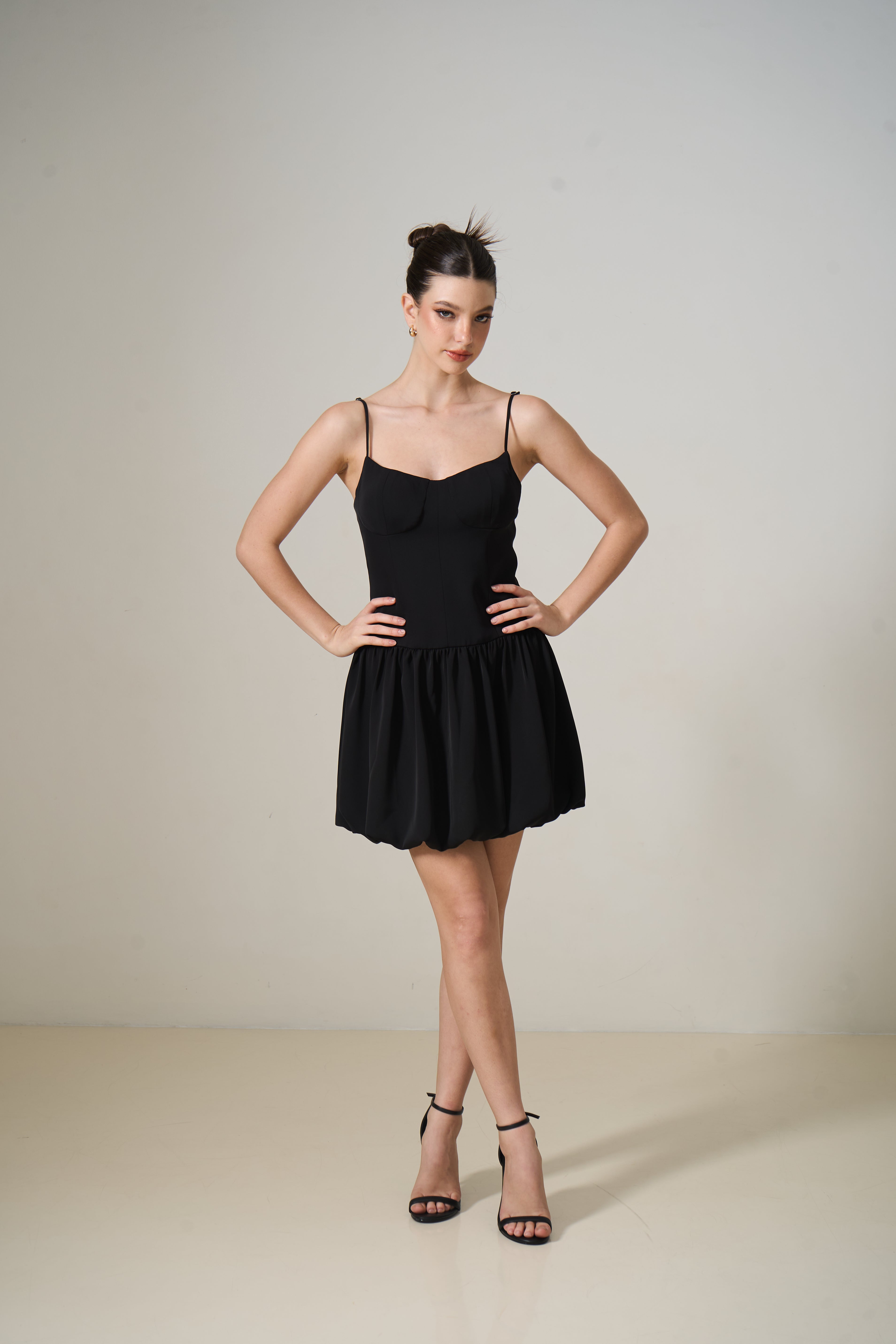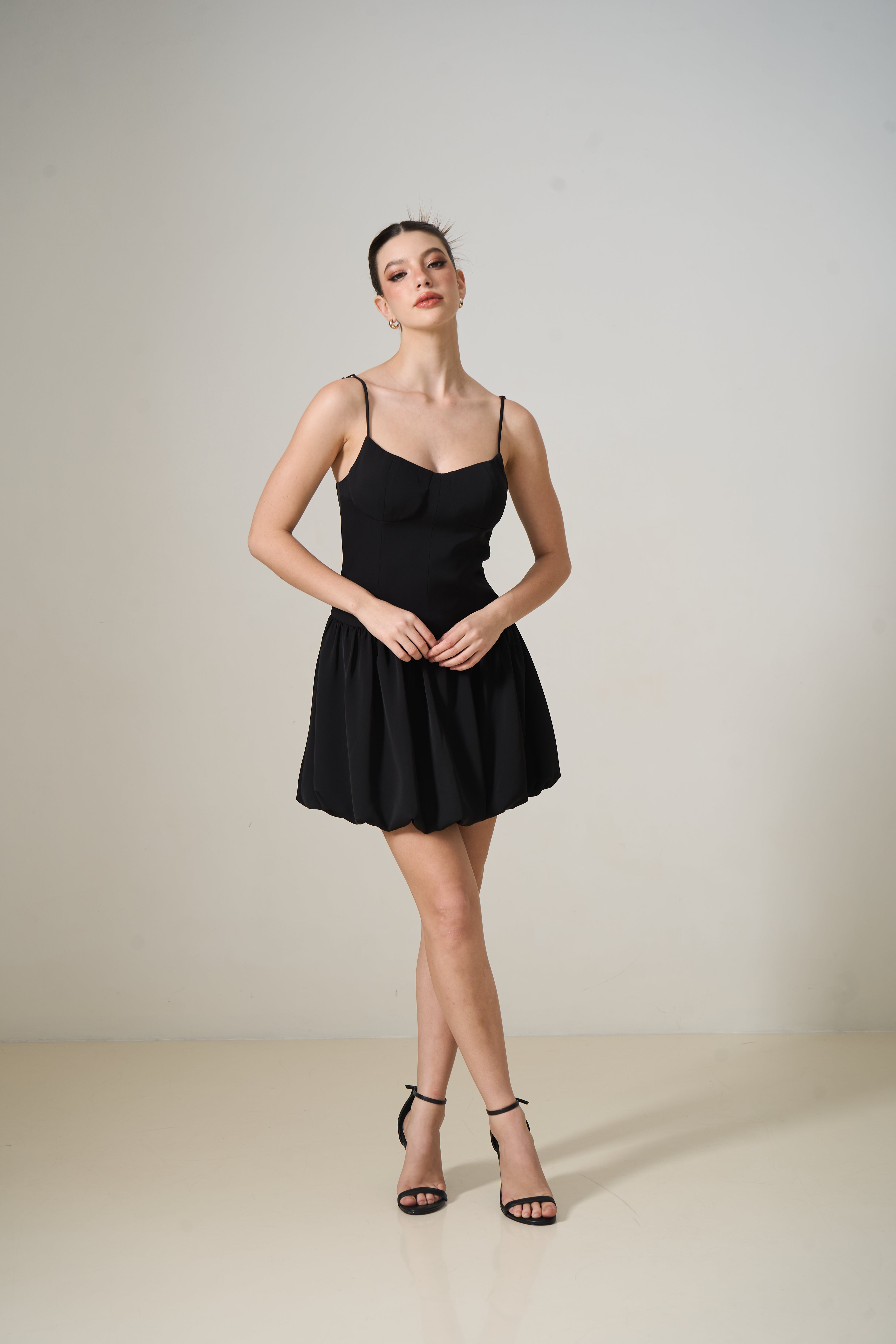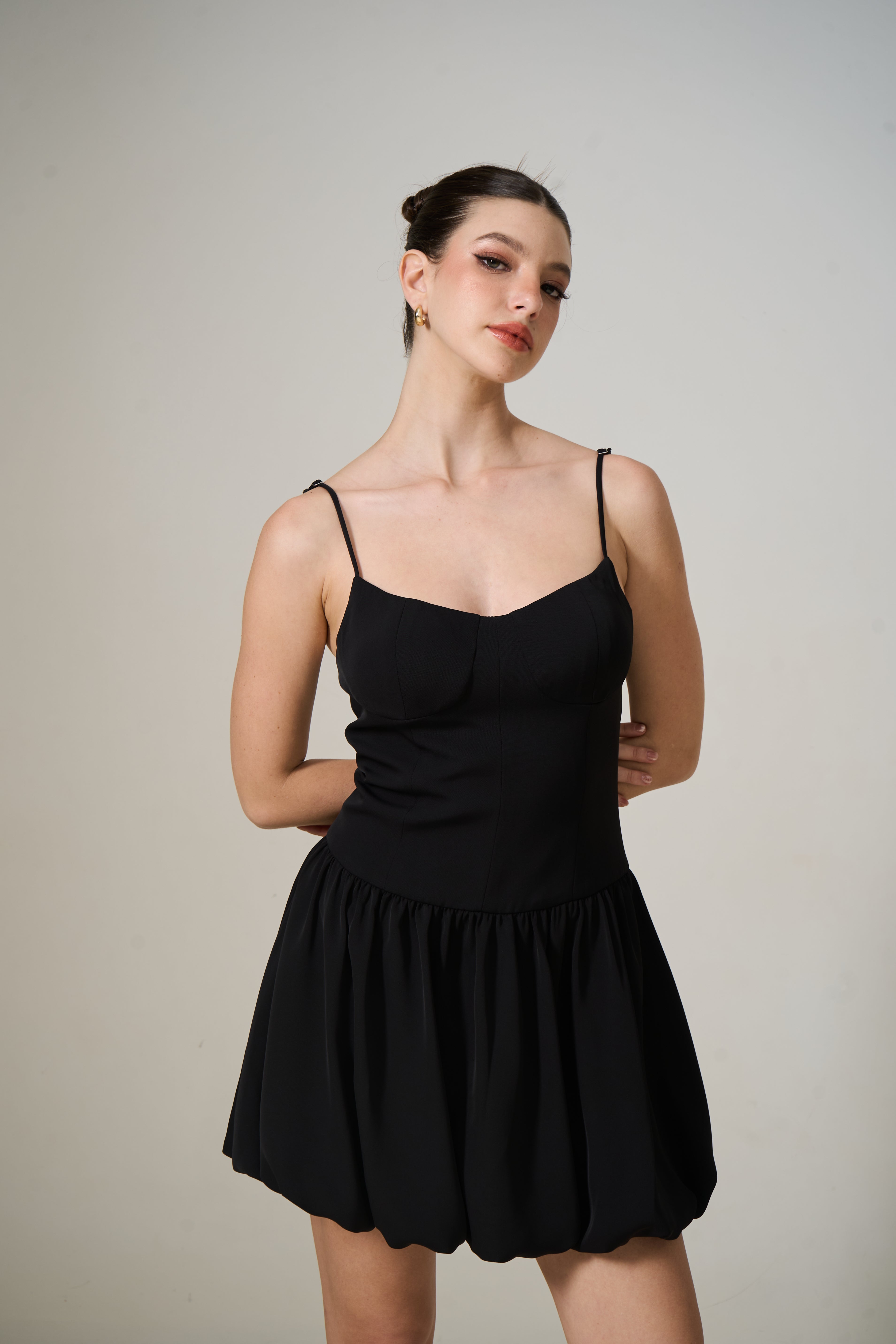 A dreamy fusion of elegance and playfulness, the Mabel Dress is designed to make a statement. With its delicate adjustable straps and unique balloon-style skirt, this dress is designed to be delightfully playful. The fitted bodice accentuates your silhouette, while the voluminous hemline adds a whimsy touch. Perfect for both daytime outings and evening soirées, the Mabel Dress is your go-to piece for a refined yet fun look.