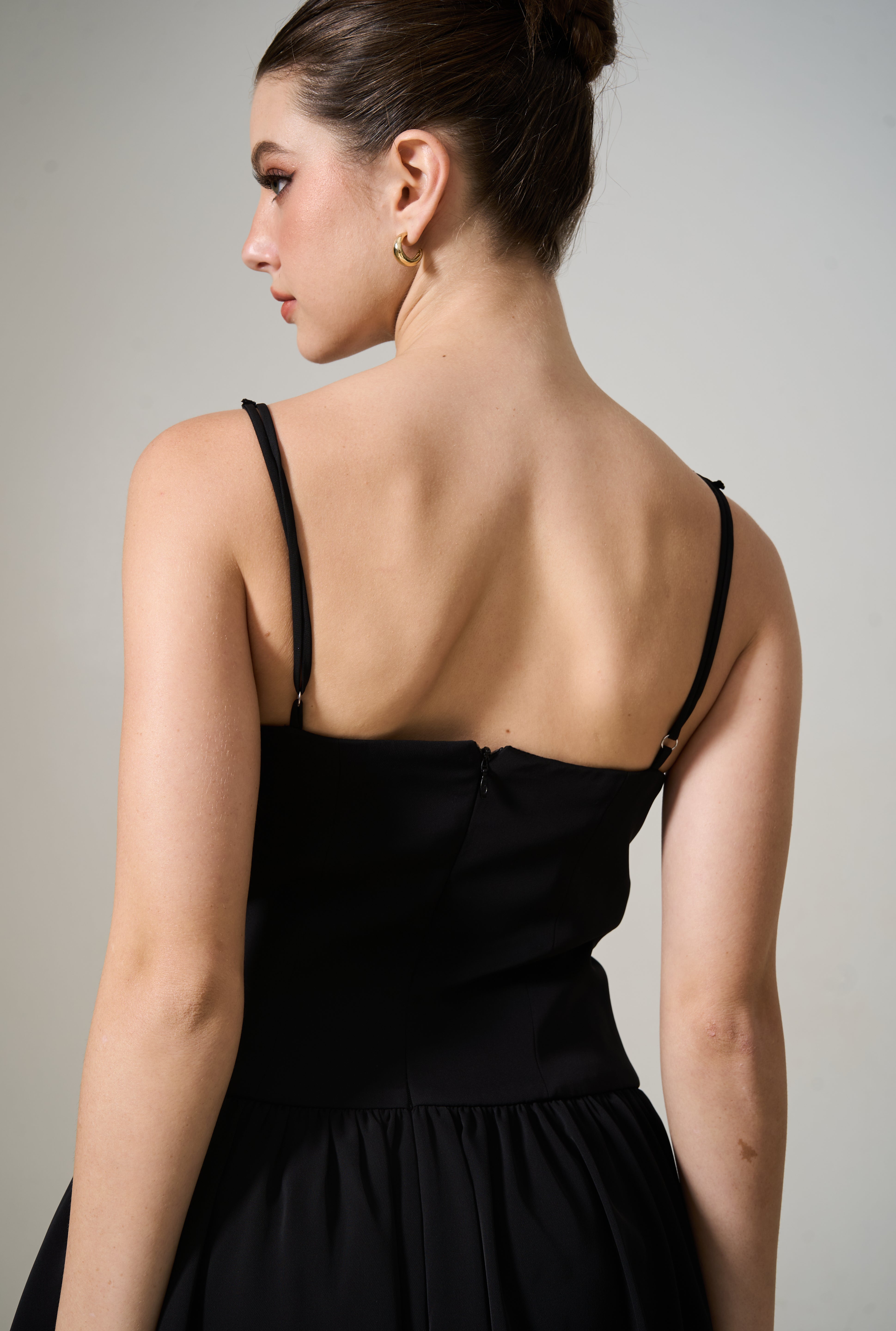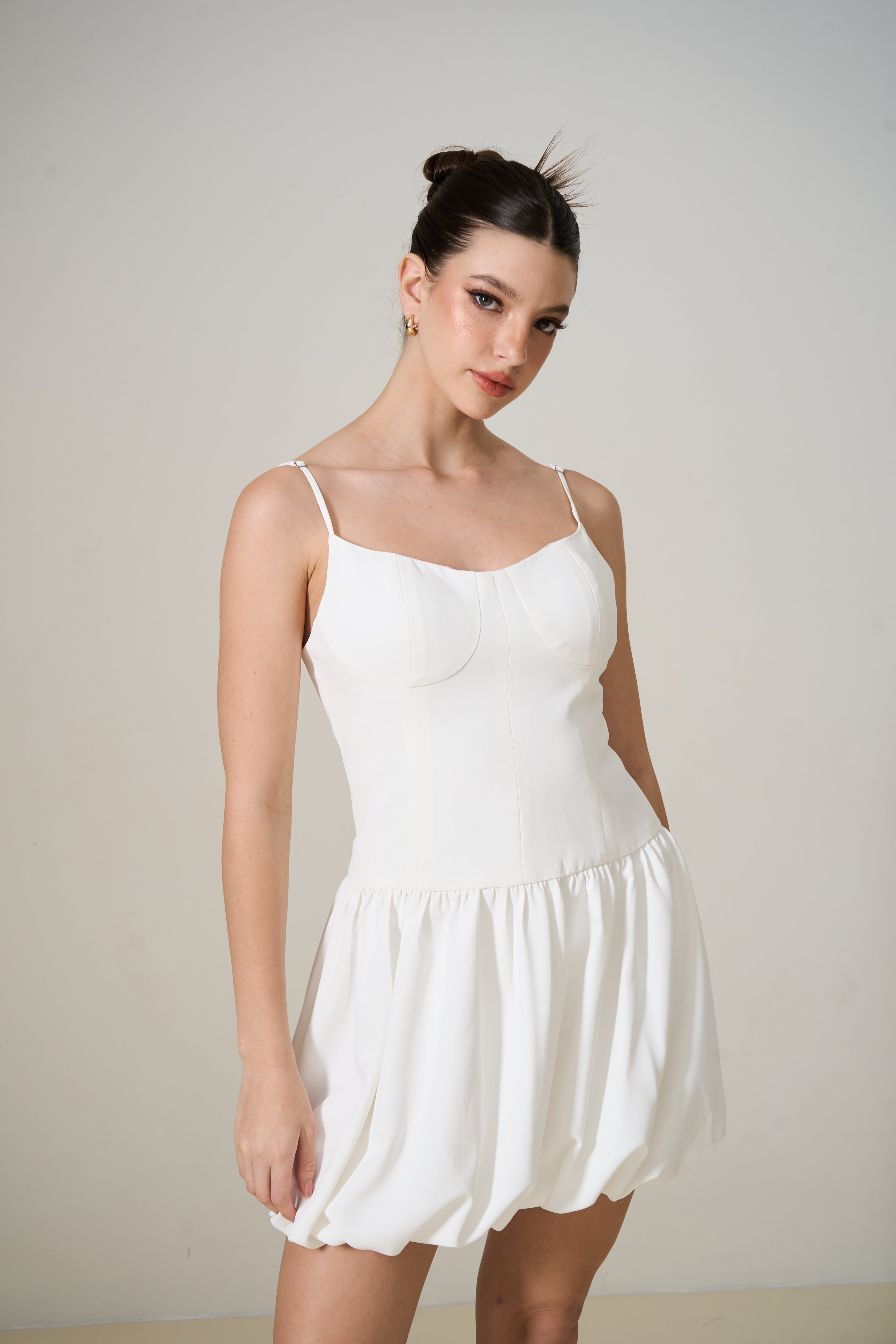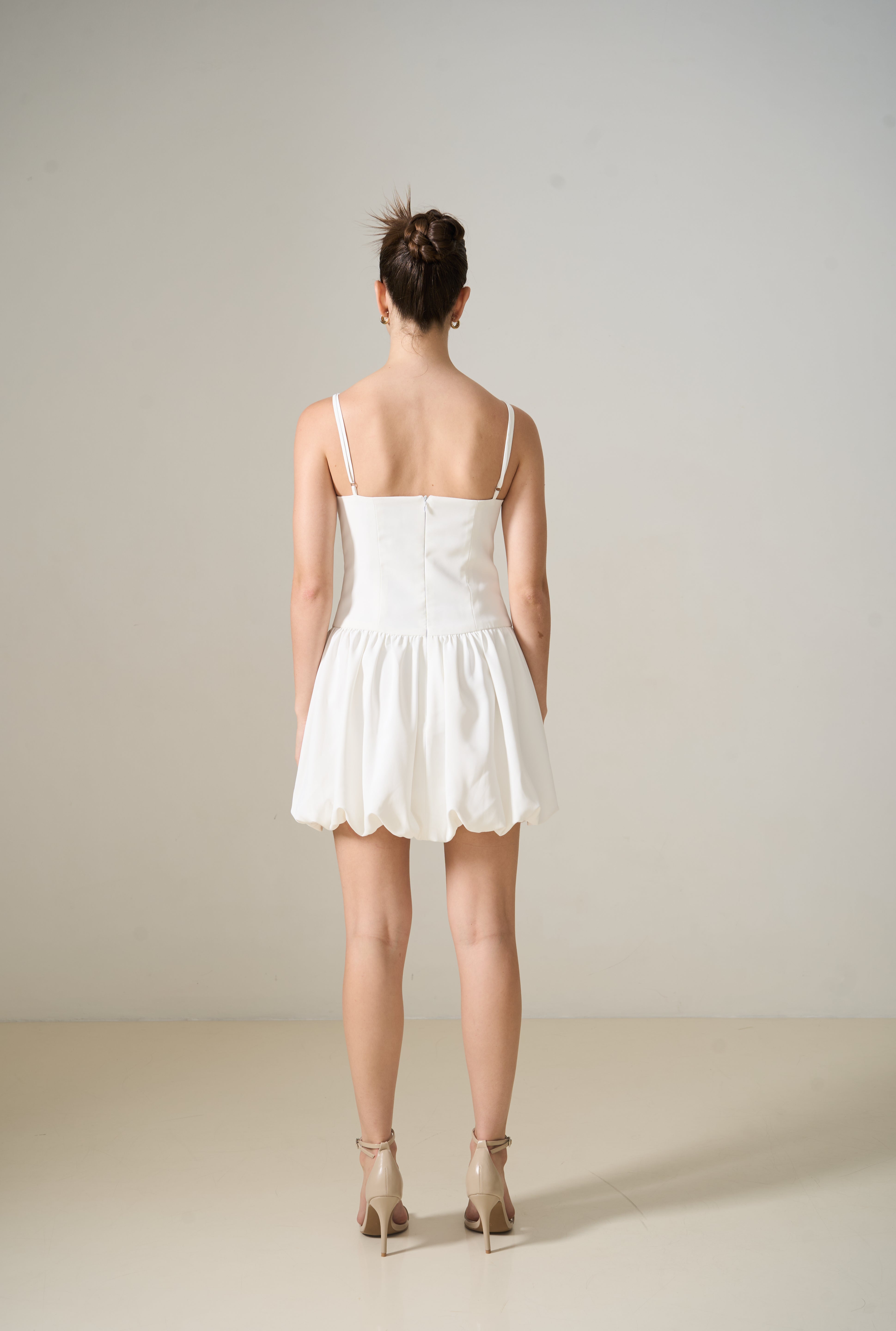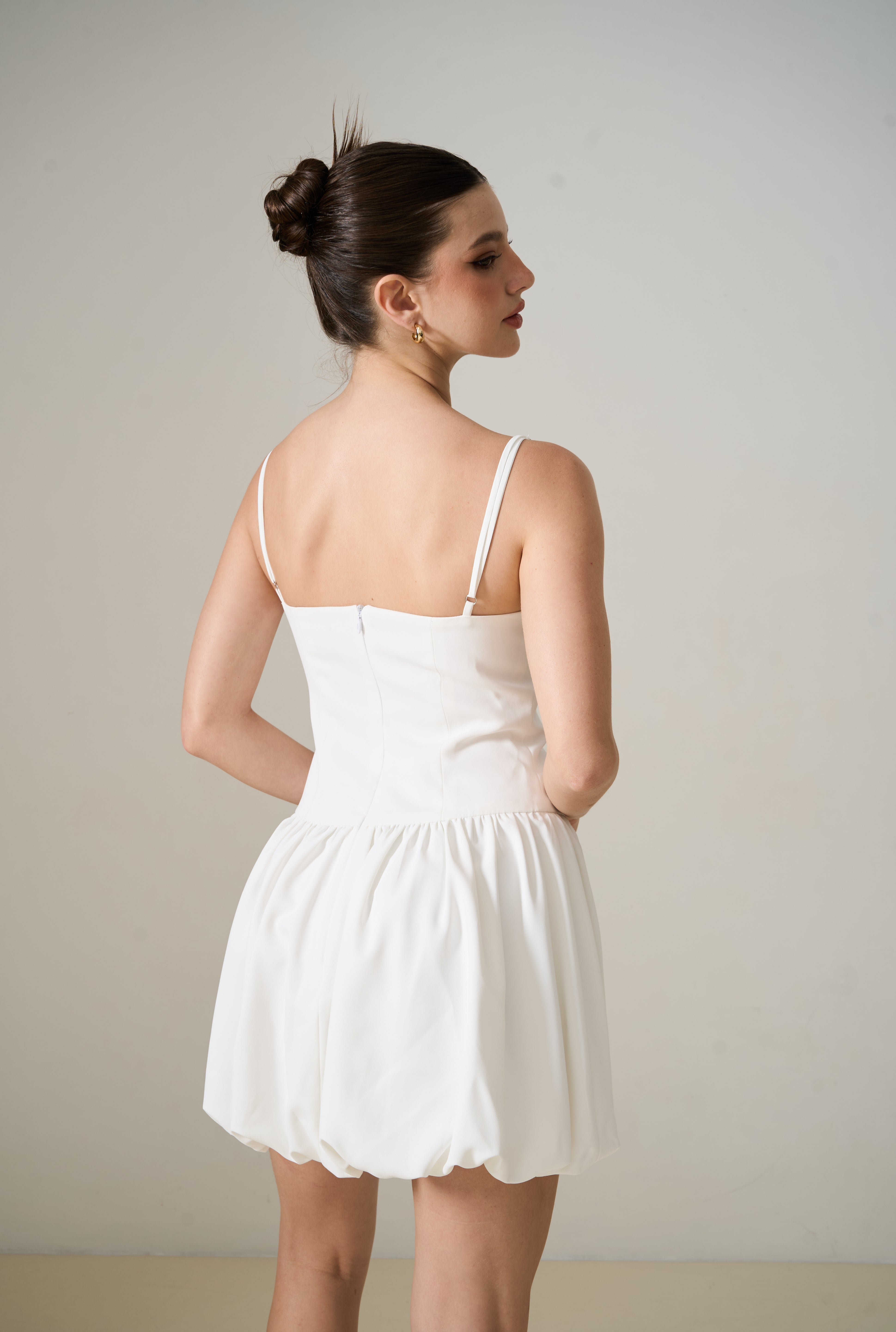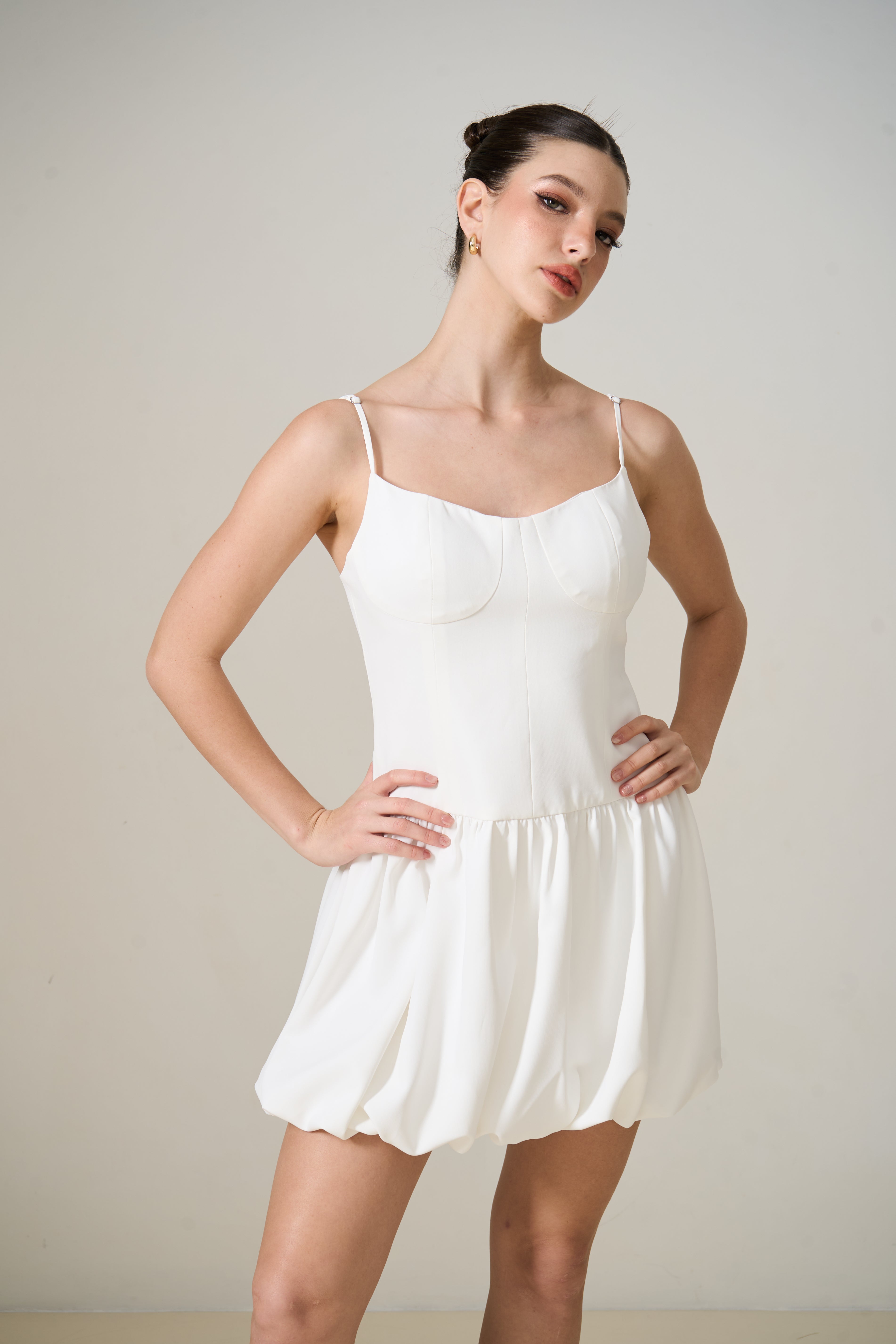 A dreamy fusion of elegance and playfulness, the Mabel Dress is designed to make a statement. With its delicate adjustable straps and unique balloon-style skirt, this dress is designed to be delightfully playful. The fitted bodice accentuates your silhouette, while the voluminous hemline adds a whimsy touch. Perfect for both daytime outings and evening soirées, the Mabel Dress is your go-to piece for a refined yet fun look.