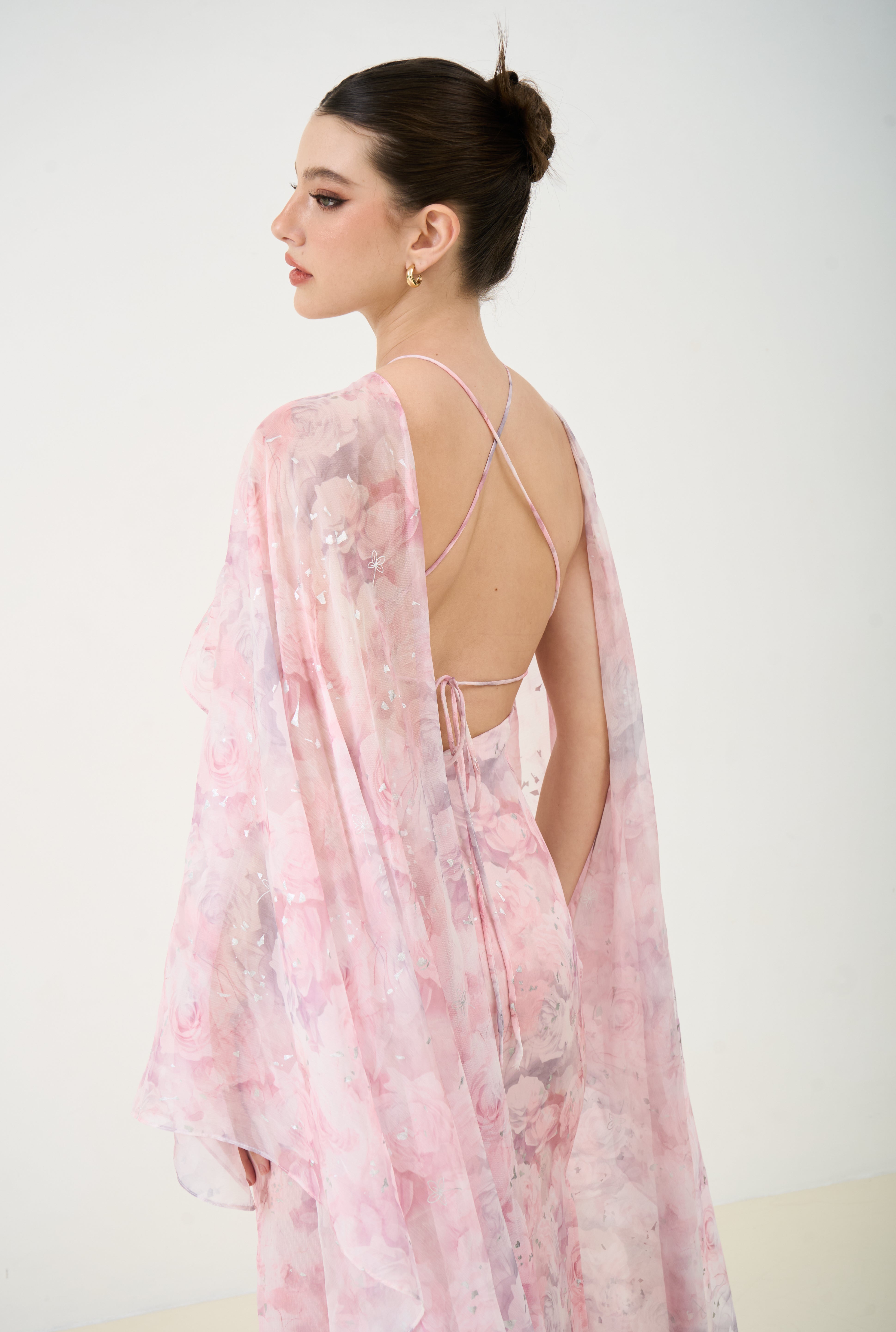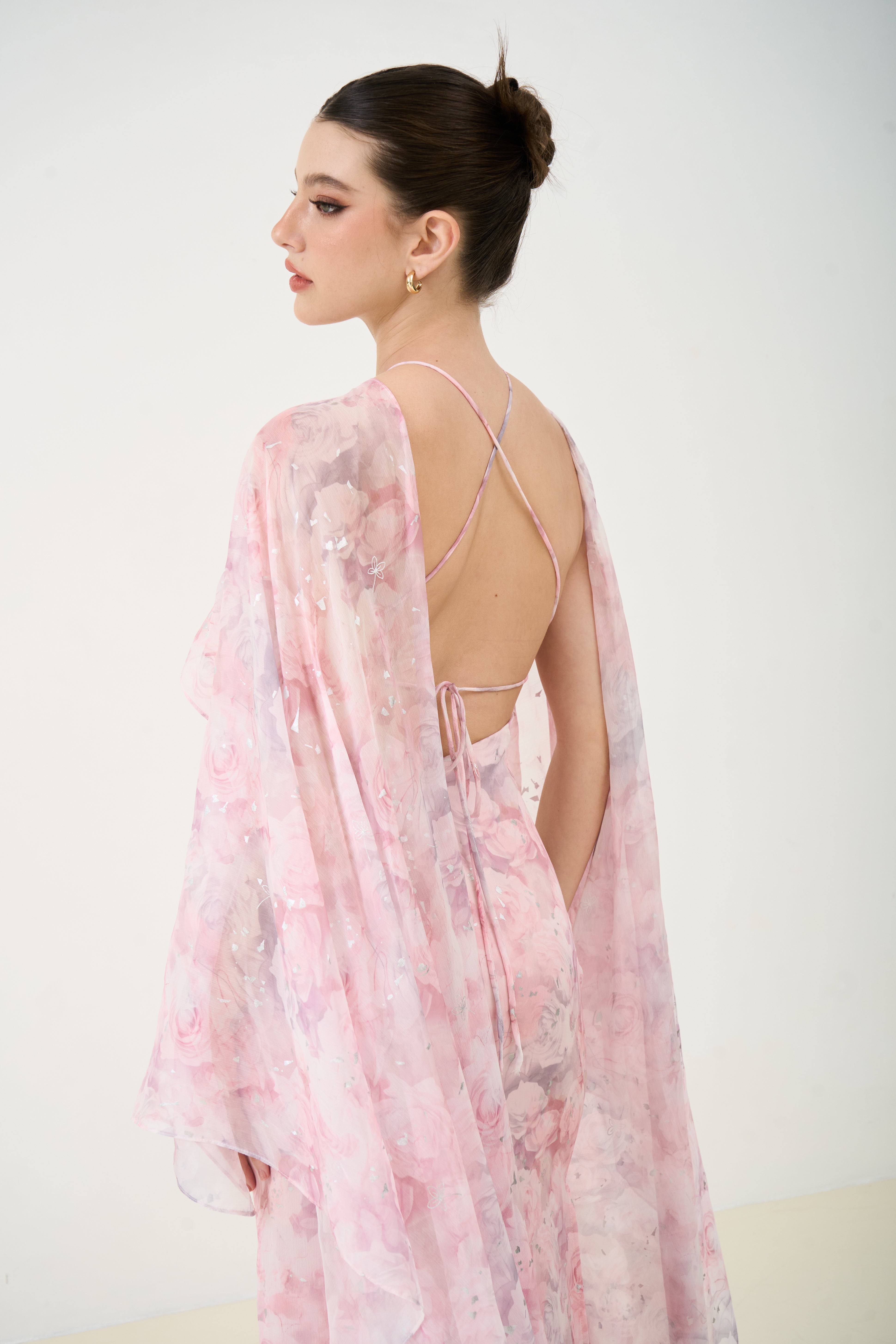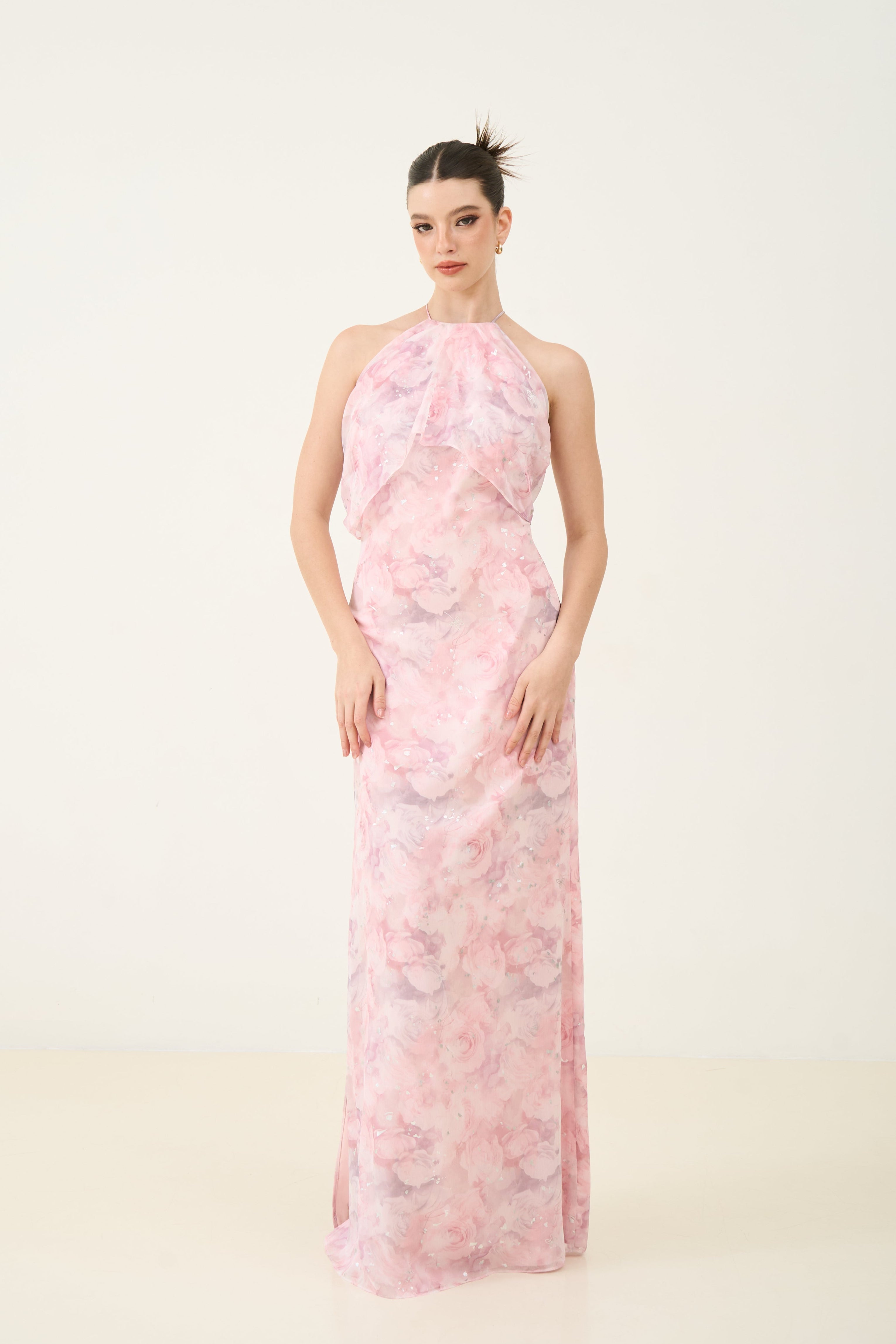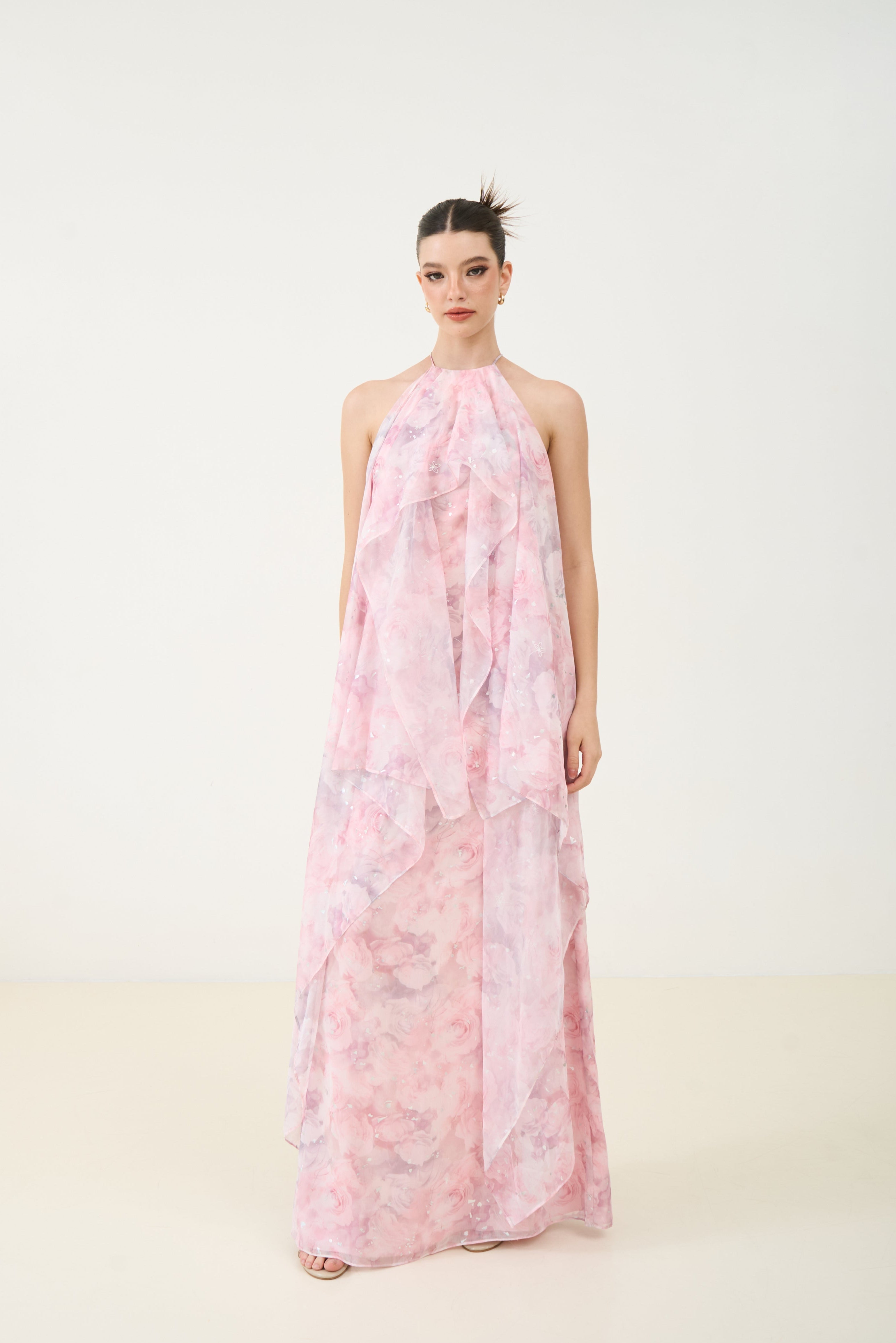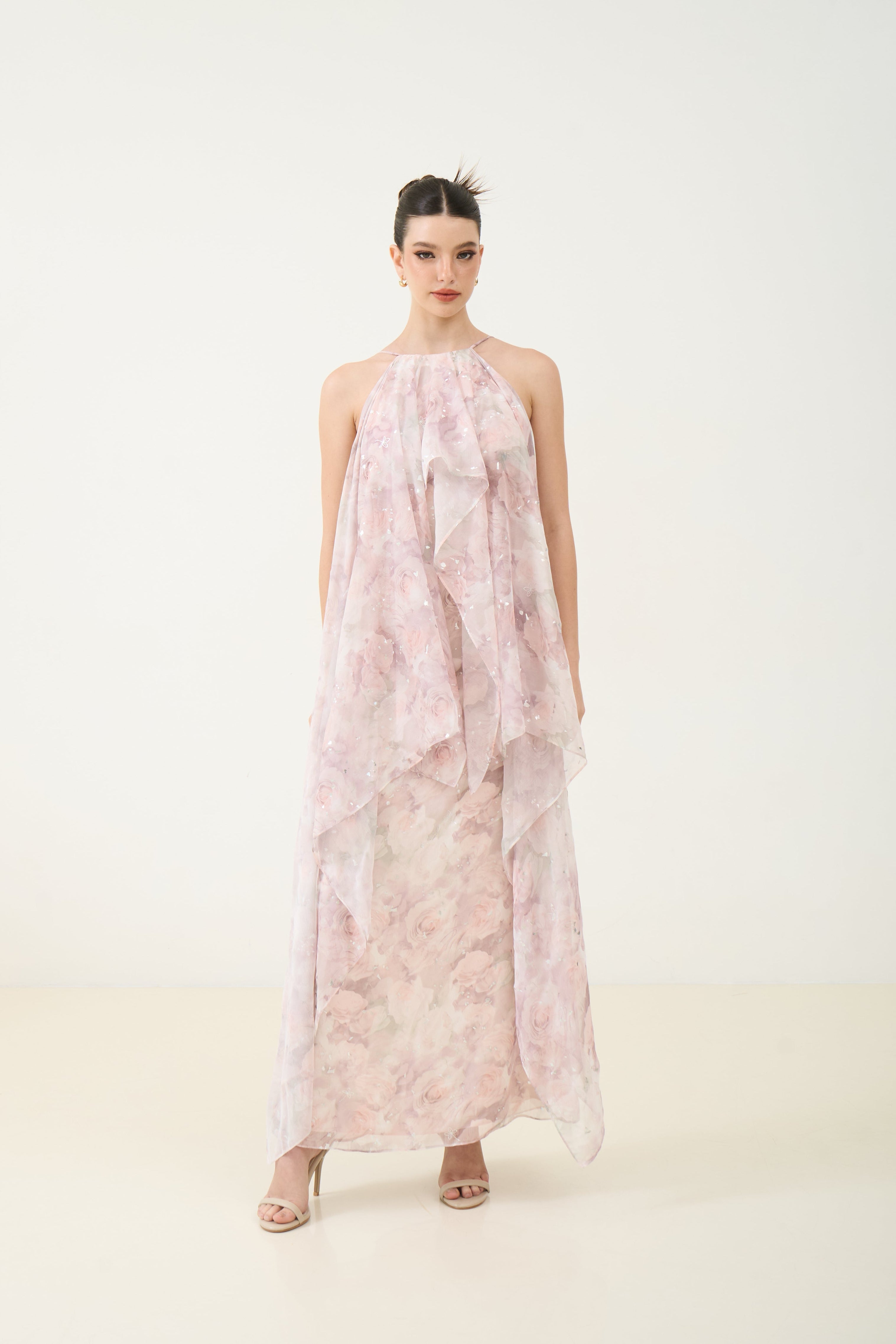 Meet the ZINNIA MAXI DRESS — your new favorite statement piece that’s as versatile as it is beautiful. Made from dreamy floral chiffon, this elegant maxi dress is designed with an adjustable strap and a detachable draped overlay that lets you style it four different ways. Whether you’re going for an ethereal cape look, a modern scarf wrap, or a clean halter silhouette, this piece transforms with ease for any special occasion.